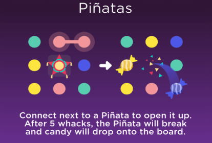 皮纳塔是第 7676 关后出现的特殊物件。 每个皮纳塔都拥有一定的生命值,您可以通过连接相邻点点或在附近引发爆炸来削减其生命值。 当皮纳塔生命值归零时,它会炸开并在游戏板上撒下糖果点点。
